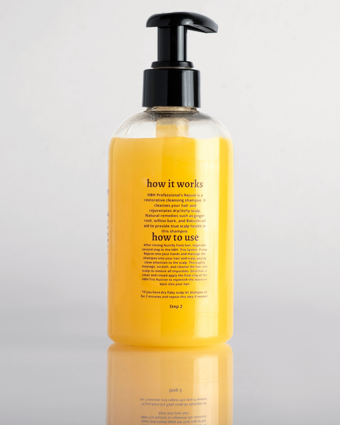 The Rejuve Shampoo sloughs through scalp buildup, impurities and dirt to help clear out pores. Its formula actively improves the appearance of scalp damage, destroying unhealthy bacteria while providing a semi-protective barrier that locks in moisture and protects the scalp from environmental pollutants. The perfect entryway is created to allow for the bakuchi oil and aloe to work their magic.